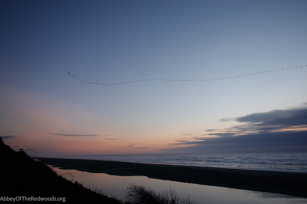 A huge line of birds flew past!